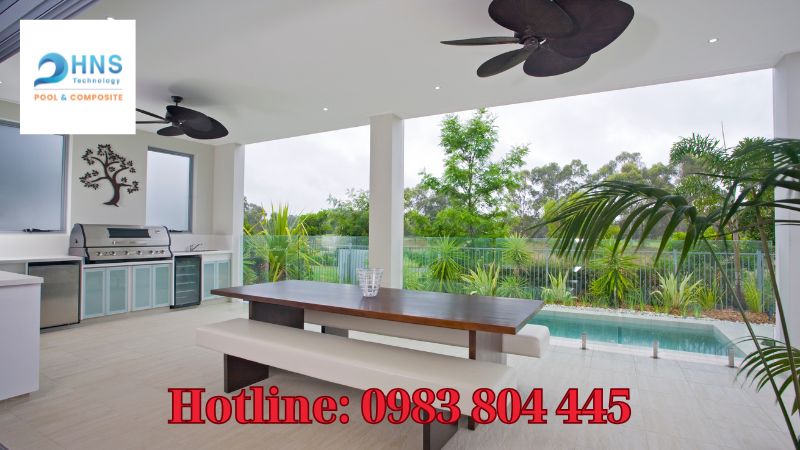 Để tạo nên hồ bơi sân vườn tích hợp BBQ hoàn hảo cho nhà phố, cách chọn vật liệu hồ bơi nhà phố và bố trí thông minh là điều không thể bỏ qua. Với hồ bơi nhỏ, hãy ưu tiên gạch chống trơn để đảm bảo an toàn, hoặc composite cho độ bền cao và chi phí hợp lý. Kính cường lực cũng là lựa chọn hiện đại, tạo cảm giác không gian rộng hơn.
