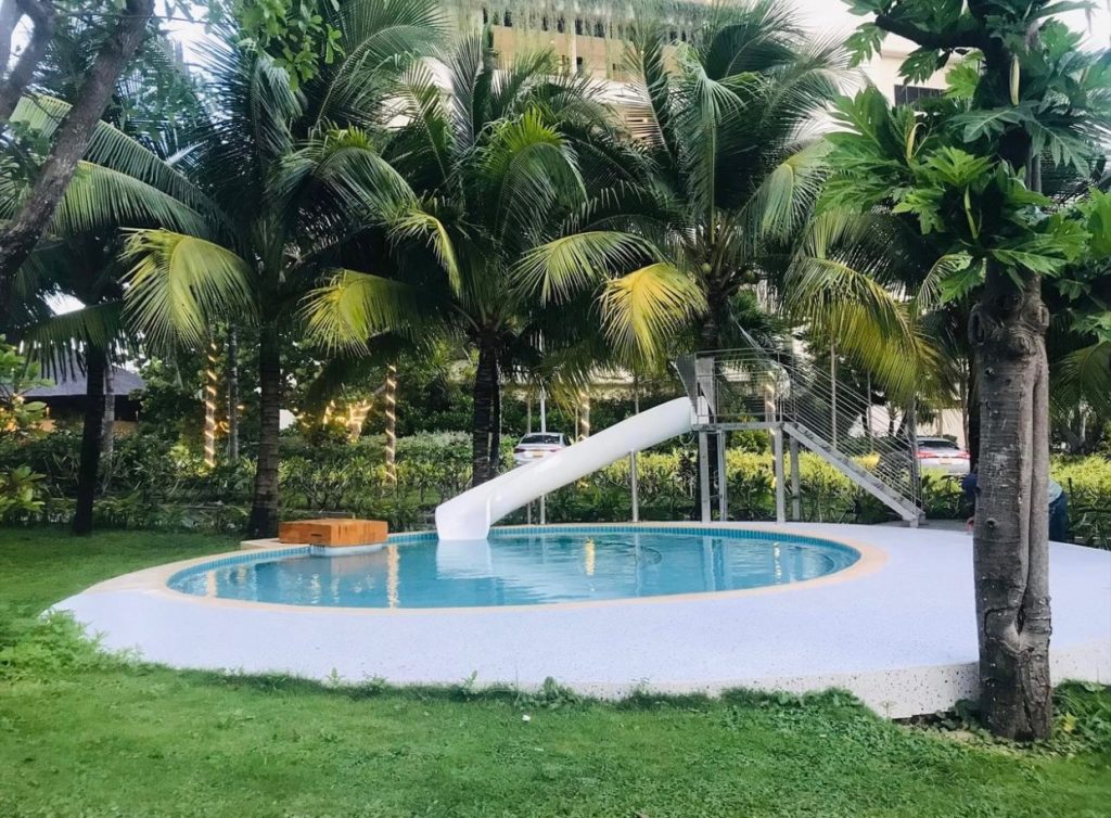– Tiện ích: Kết hợp đa dạng cả cầu trượt, máng trượt hở, cầu thang cùng các thiết bị công viên nước khác.
