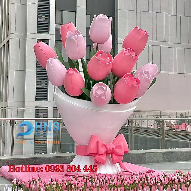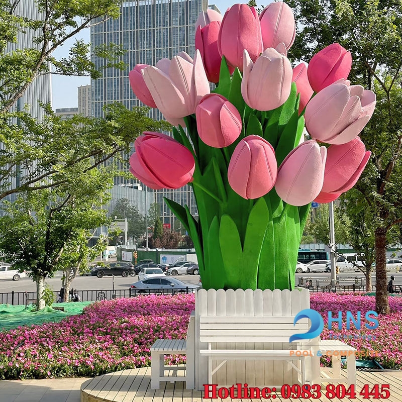 Hoa tulip, những bông hoa kiêu sa với đủ sắc màu rực rỡ, loài hoa tượng trưng cho tình yêu hoàn hảo, cho sự khởi đầu tươi mới của mùa xuân ấy luôn khiến lòng người xao xuyến mỗi khi ngắm nhìn. Và sẽ tuyệt vời biết bao nếu chúng ta có thể mang cả một vườn tulip rực rỡ vào giữa lòng thành phố, hay tạo trung tâm thương mại tấp nập trở thành một không gian tràn ngập sắc hoa tươi tắn quanh năm. Chắc hẳn ai cũng mong muốn điều đó, nhưng hoa tulip tươi lại đỏng đảnh và khó chiều biết bao. Chúng chỉ nở rộ trong một khoảng thời gian ngắn ngủi, đòi hỏi sự chăm sóc tỉ mỉ. Vậy làm sao để giữ mãi vẻ đẹp ấy, để những đóa tulip luôn bừng nở, không bao giờ tàn phai? Hiểu được điều đó, Sagocomposite sẽ mang mô hình hoa tulip composite khổng lồ, sống động như thật, mà lại vượt thời gian và luôn bừng nở, không cần chăm sóc đến với bạn.