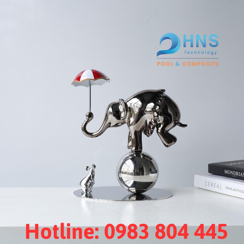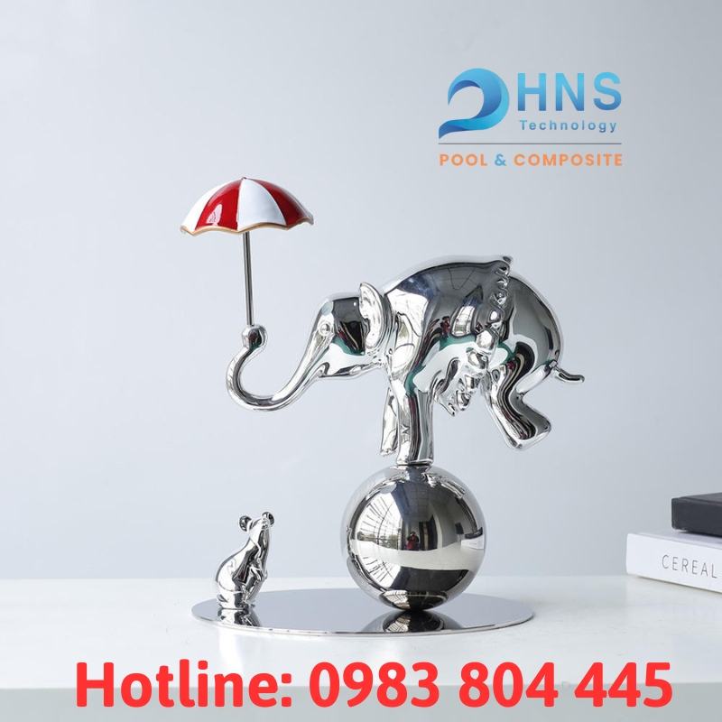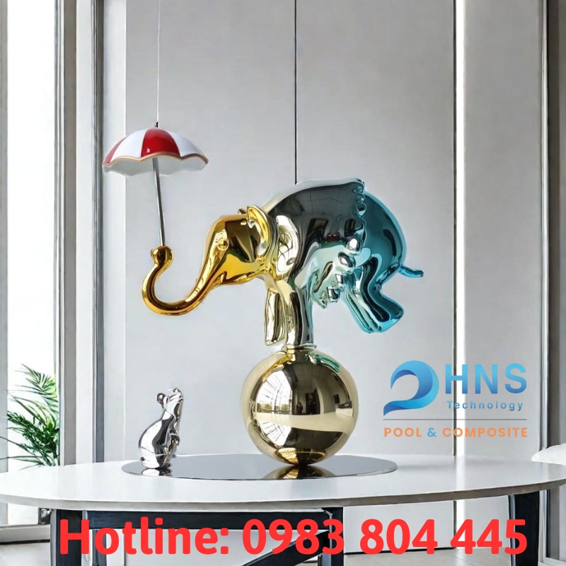 Tại Sagocomposite, chúng tôi tin rằng sự độc đáo không cần phải quá phô trương. Nó nằm ở sự tinh tế và bất ngờ. Và đó là lý do chúng tôi giới thiệu sản phẩm “Tượng voi cân bằng”. Hãy nhìn xem, tác phẩm này hoàn toàn khác biệt: một chú voi mạnh mẽ nhưng đang giữ sự cân bằng tuyệt vời, cùng với lớp sơn bóng gương độc đáo thay đổi theo ánh sáng. Nó mang phong cách nghệ thuật hiện đại nhưng lại có sự hài hước, dễ gần.