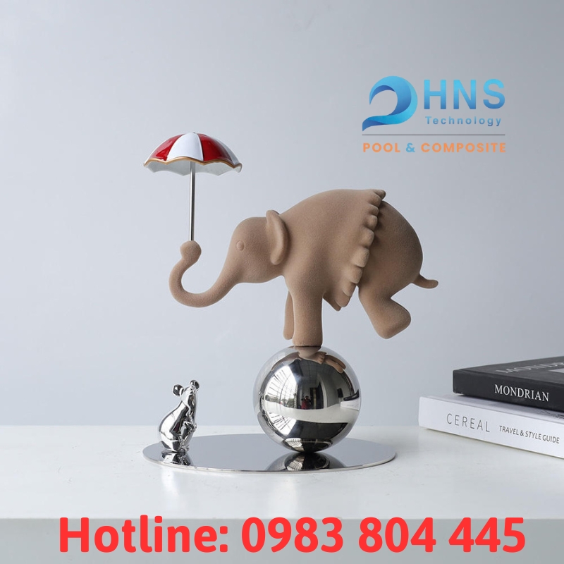 3. Trang trí văn phòng, nhà cửa với tượng voi xiếc cân bằng composite